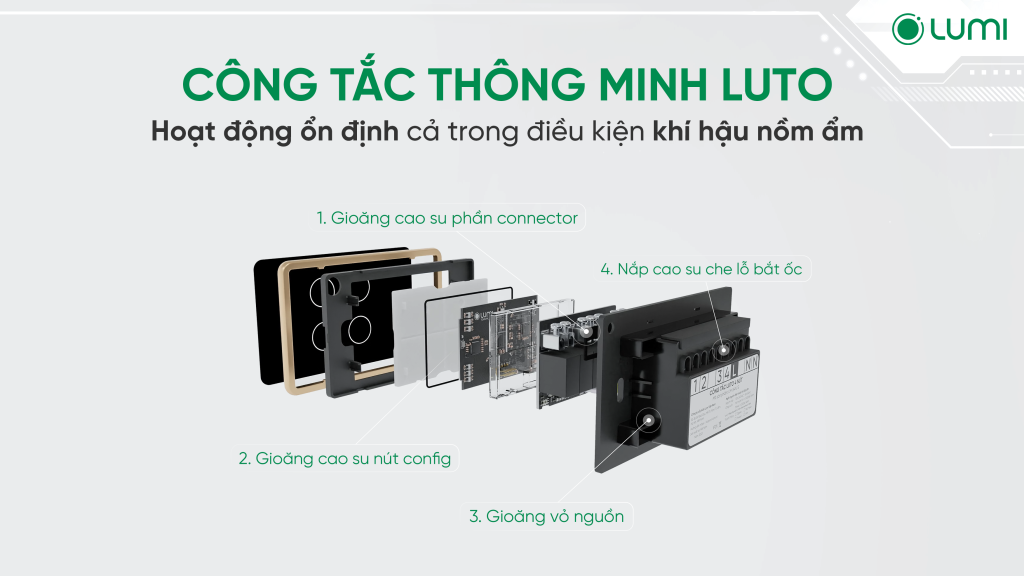 Các vị trí gioăng cao su trong công tắc thông minh Luto