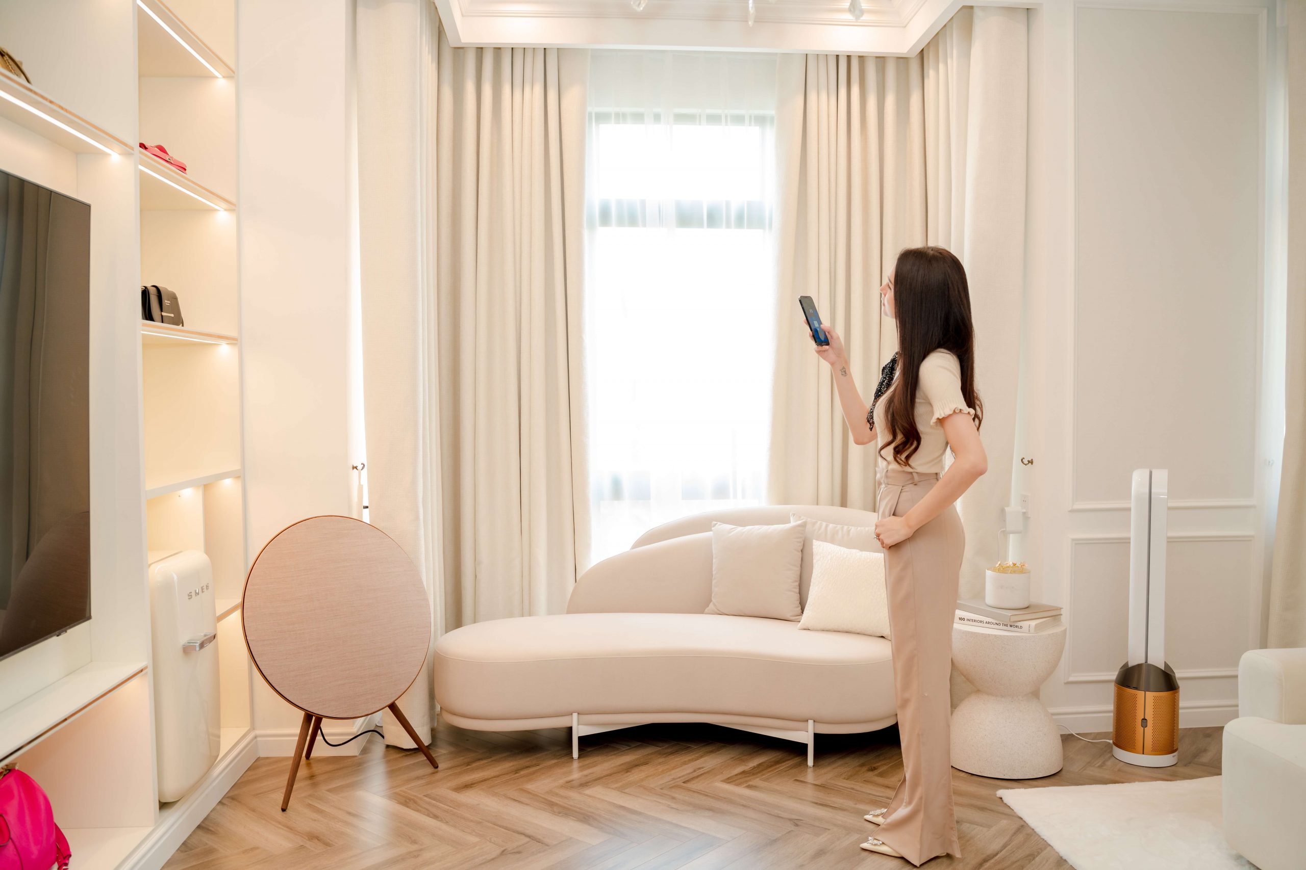 “Mọi người đều thấy nhà của Hương Giang được làm theo phong cách khá cổ điển nhưng không phải vì thế mà thiếu đi sự tiện nghi, đặc biệt là các yếu tố công nghệ. Công nghệ giúp cuộc sống của mình thoải mái, tiện ích hơn rất nhiều thì đâu có lý do gì Giang không cập nhật xu hướng mới nhất này.”– Nàng hậu đa tài chia sẻ.