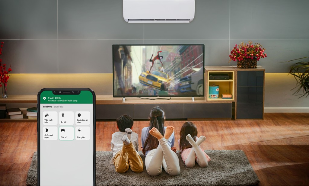 Điều khiển hệ thống điều hoà, tivi, quạt thông qua điện thoại, hẹn giờ, lập cảnh
