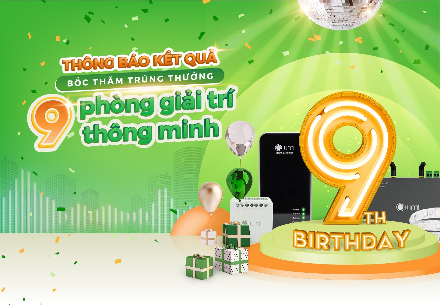 Từ ngày 01/04/2021 – 26/04/2021, Lumi Việt Nam triển khai chương trình Ưu đãi mừng sinh nhật Lumi 9 tuổi, với phần quà là 09 phòng giải trí thông minh cho 09 khách hàng may mắn nhất. Những khách hàng đủ điều kiện tham gia bốc thăm là những khách hàng có đơn hàng từ 55.000.000đ để trúng thưởng bộ thiết bị như sau: