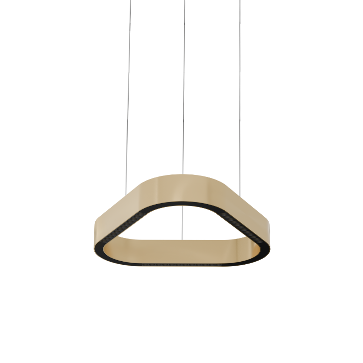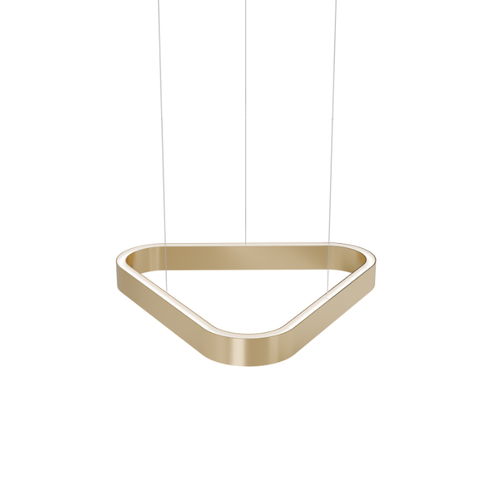 Đèn thả Lyra gây ấn tượng ngay từ cái nhìn đầu tiên với thiết kế tam giác bo tròn độc đáo, chế tác từ nhôm nguyên khối, phủ màu Rose Gold cao cấp. Vẻ ngoài tinh tế, hiện đại giúp Lyra hoà hợp vào mọi phong cách nội thất, mọi không gian sinh hoạt.