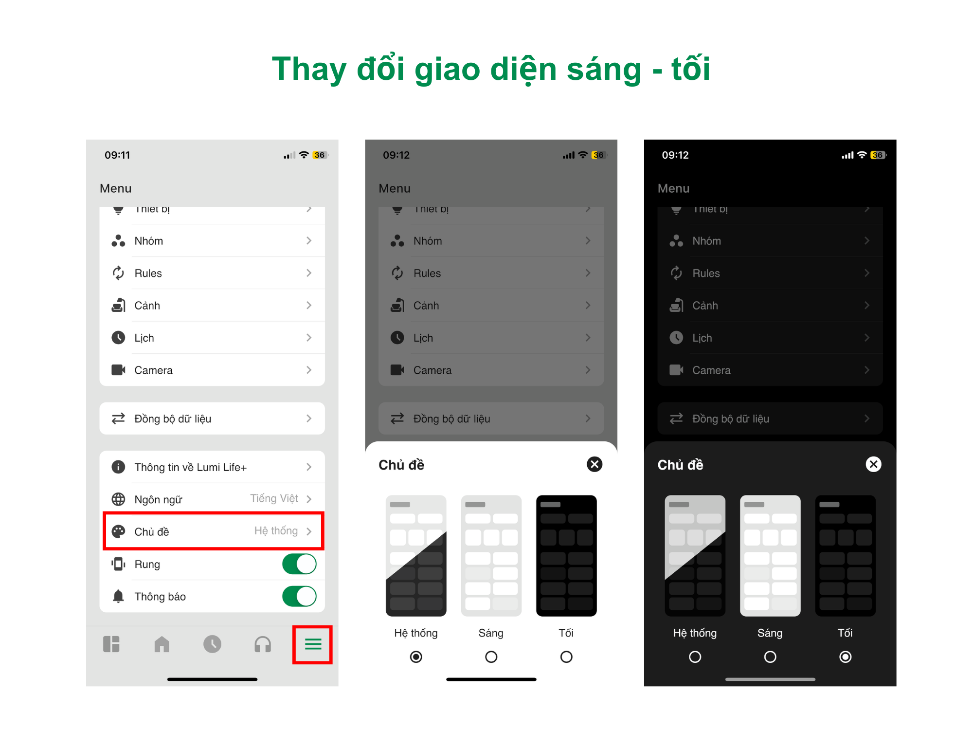 Hướng dẫn thay đổi chủ đề trên app Lumi Life+: